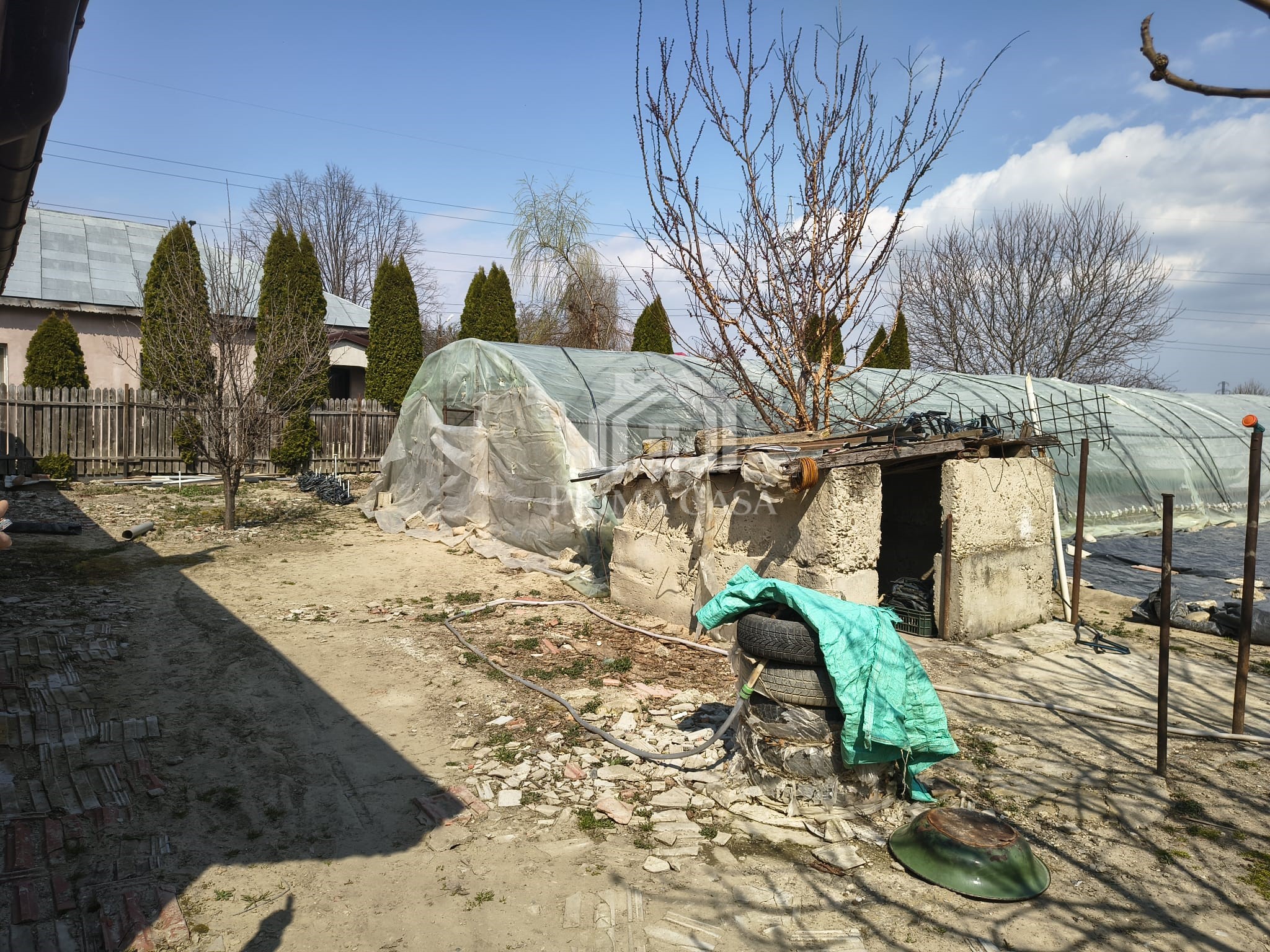 Detalii: Constructie solida pe cadre de beton armat (1995), acoperita cu tigla metalica, posibilitate de extindere pe verticala, izolatie exterioara / interioara, sobe teracota, parchet / gresie / faianta, 3 solarii cu sistem de irigatie. Libera. Zona foarte linistita.