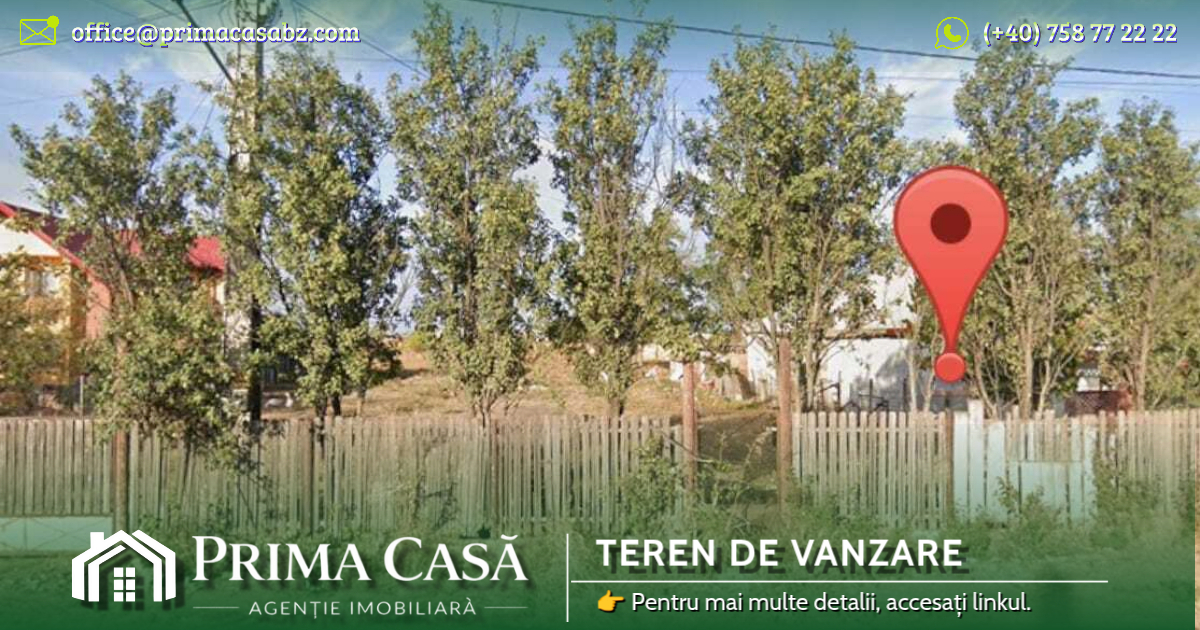 Alte detalii: Pretabil pentru dezvoltare imobiliara / ansamblu rezidential. Drum asfaltat (8km de Buzau), transport public langa, vis a vis de magazinul LA DOI PASI